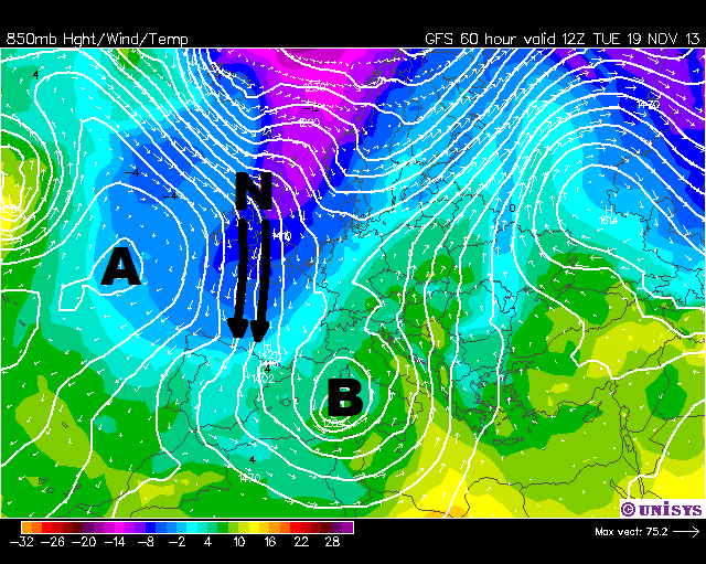 No guardéis gorros y bufandas!!.A partir del Martes por la tarde esperamos la llegada de una nueva masa de aire frío, polar marítima. Son vientos húmedos y fríos que dejarán precipitaciones y nieve en cotas bajas.La configuración atmosférica será similar a la de estos últimos fríos.