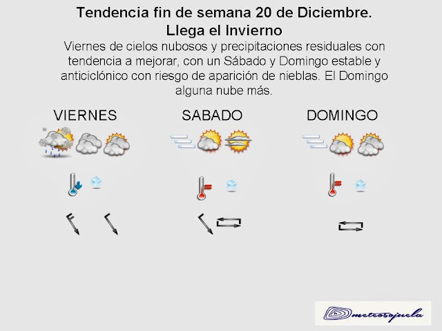 SABADO 21 DE DICIEMBRE: LLEGA EL INVIERNO.SITUACION ESTABLE Y ANTICICLONICA CON NUBES Y CLAROS Y RIESGO DE FORMACION DE NIEBLAS.