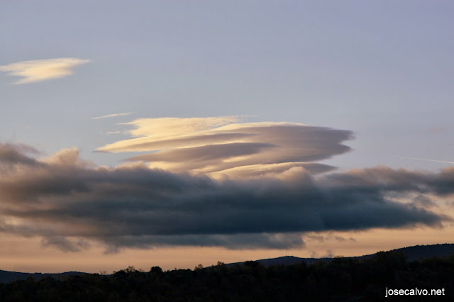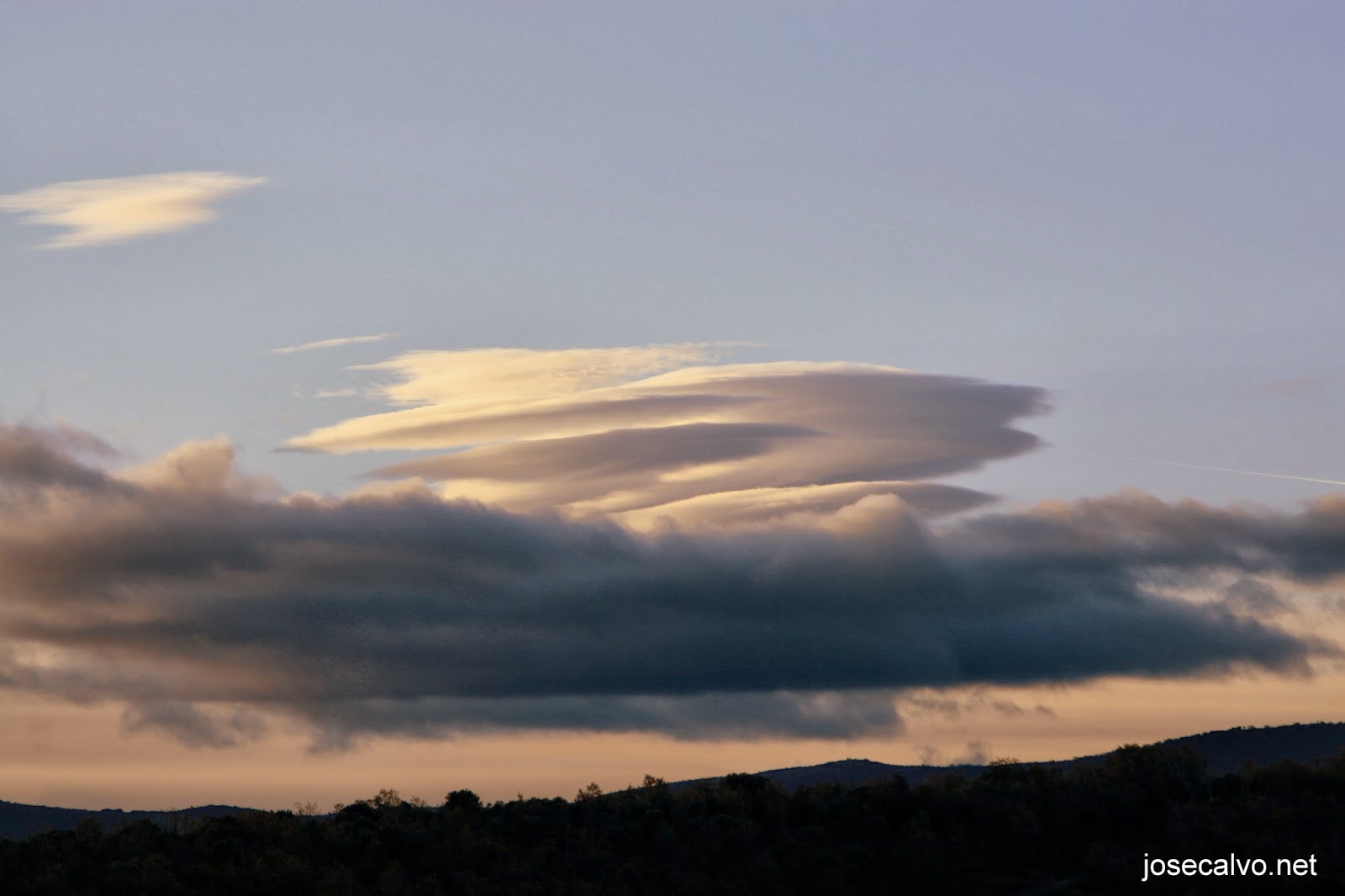 ..son las típicas nubes en forma de “ovni”….que se producen cuando soplan fuerte los vientos en las cumbre….y en nuestra zona son muy características con vientos fuertes del Sw.