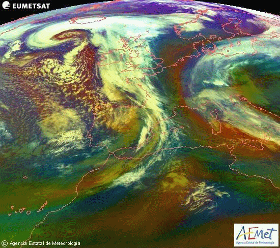 Animación con imágenes de masas de aire del satélite Meteosat…