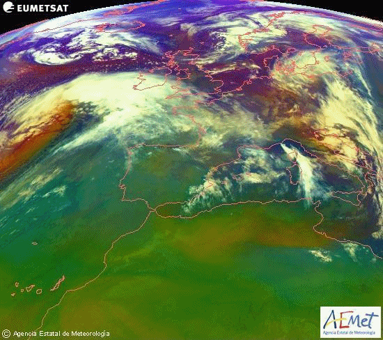 Fijaos en esta animación que he realizado con imágenes horarias de las masas de aire tomadas desde el satélite Meteosat…