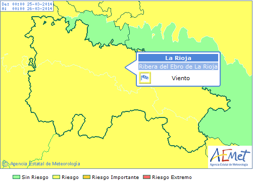 Estaremos en alerta amarilla según la AEMET por vientos de hasta 80 km/h y hasta 5 cm de nieve en la Ibérica.
