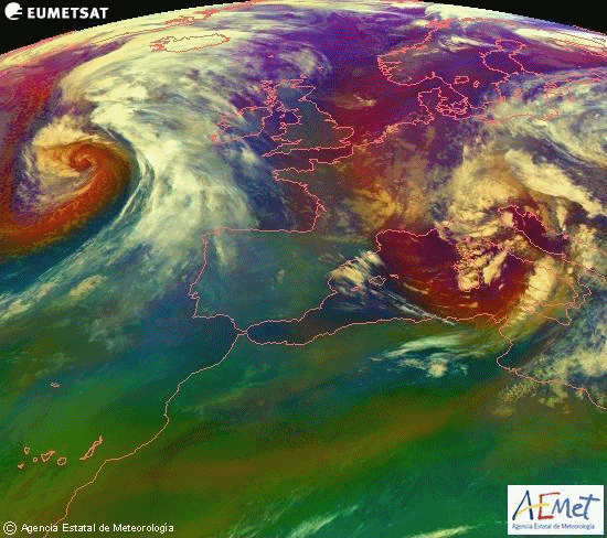 Fijaos en esta animación horaria desde el lunes con imágenes de masas de aire del satélite Meteosat….