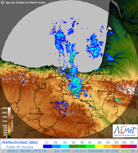 Se pueden producir precipitaciones en cualquier punto, más débiles y dispersas en el valle y más intensas, incluso de carácter tormentoso en zonas montañosas, pudiendo ser de nieve entorno a los 1800 metros.