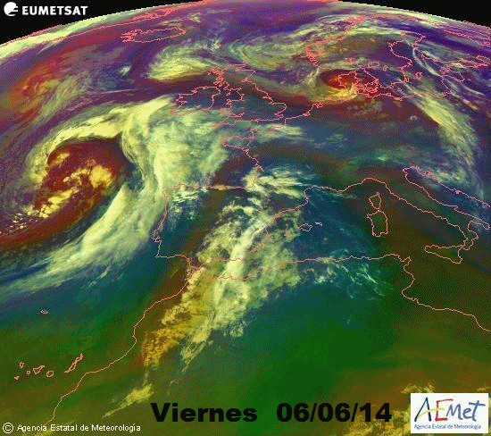 Todo ello originado por los vientos cálidos del Sw, generados por esa potente borrasca atlántica que se ha situado frente a las costas gallegas y que así se veía su evolución desde el satélite….