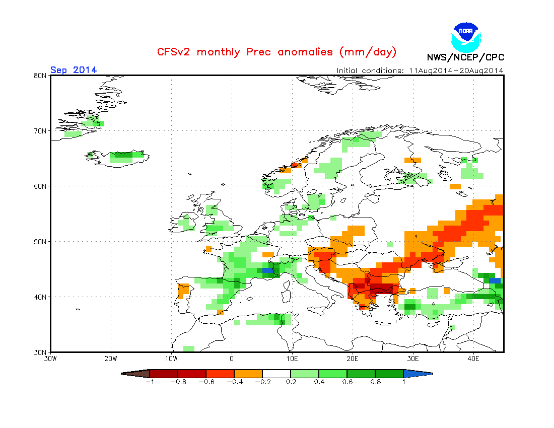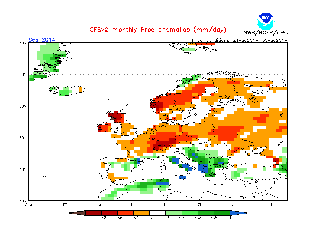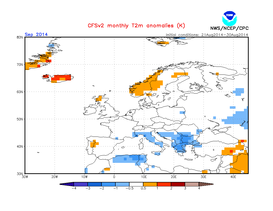 Así que parece que, según los modelos americanos, septiembre en nuestra región va a comportarse, muy parecido a lo que suele ser habitual, o con muy ligeras variaciones.
