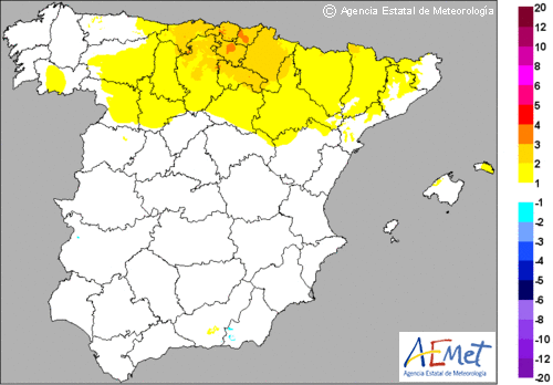 La AEMET predice cantidades acumuladas de entre 5 y 10 litros