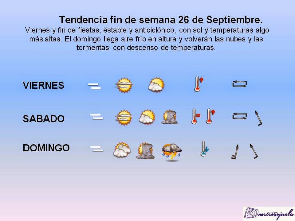 VIERNES 26 DE SEPTIEMBRE: TIEMPO ESTABLE Y ANTICICLONICO CON SOL Y TEMPERATURAS MAS SUAVES.
