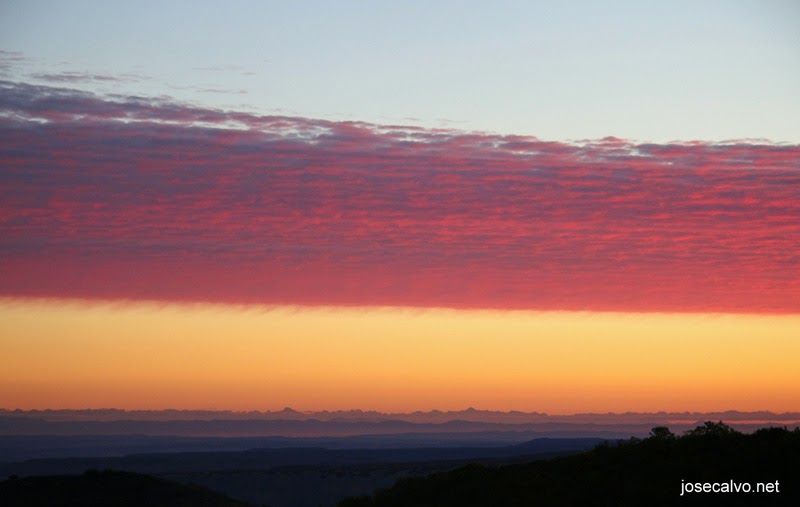 Esta primeras son de altocúmulos rojizos al amanecer con el perfíl de los Pirineos al fondo….