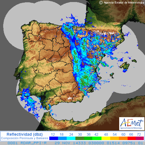 y así vemos,con imágenes de radar, la intensidad de las precipitaciones….
