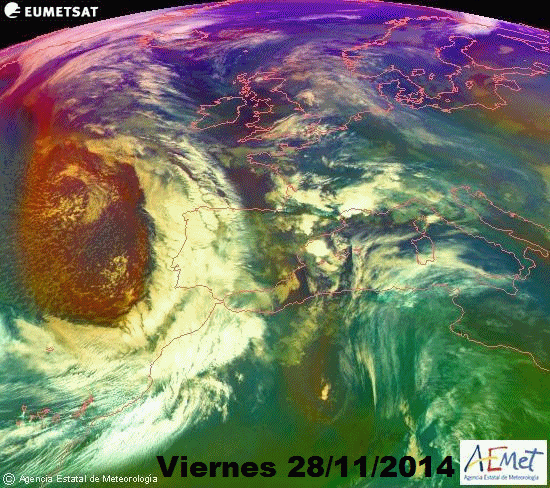 Así se podía ver la evolución de la borrasca desde el satélite Meteosat…..