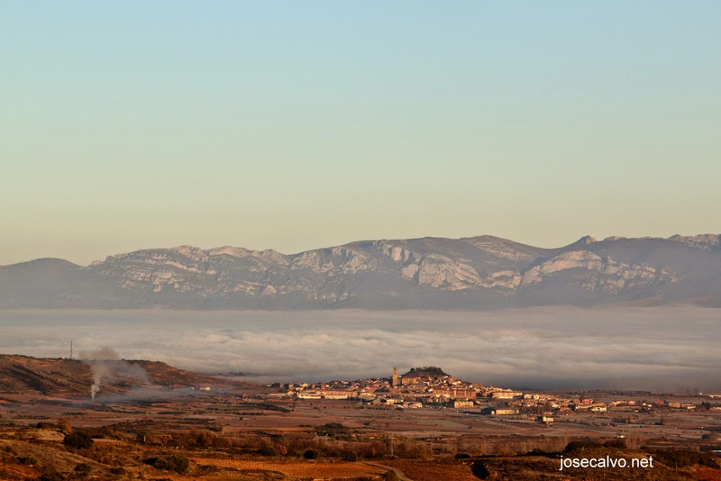 …por eso hoy seguía Logroño dando temperaturas mínimas al mediodía, porque el aire frío seguía acumulado en el fondo del valle, y aunque tuvieséis sensación de que no había niebla…fijaos que bien se ve en la foto tomada desde Sojuela….