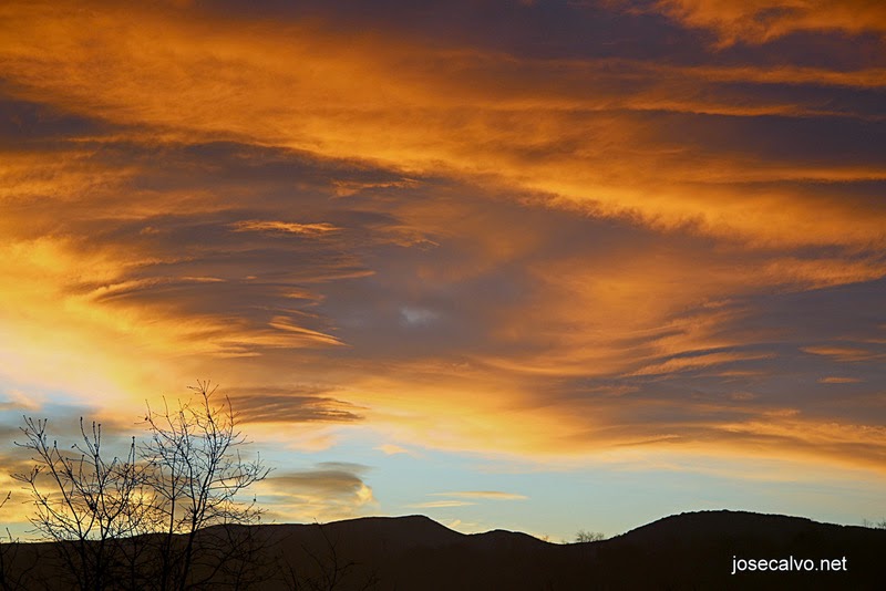 Hoy ya nos esta atravesando un frente acompañado de vientos fuertes del Sw que superan los 100 km/h en zonas altas y que dejan bonitas formaciones nubosas como estos Cúmulos Lenticularis, que aparecen por el choque del viento contra las cimas de la Ibérica…