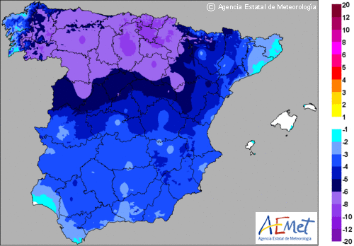El cambio en la posición de los centros de alta presión (anticiclón de las Azores y Europeo) favorece la llegada de vientos marítimos procedentes de altas latitudes que van a arrastrar frentes, afectando sobre todo al norte peninsular.