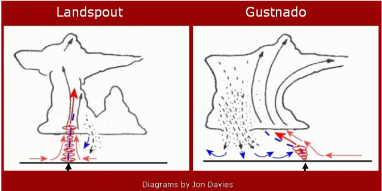 Son remolinos de viento asociados a la llegada de una tormenta, que por el rozamiento con el suelo, adquieren el giro ciclónico, independientemente de las brisas o vientos existentes.
