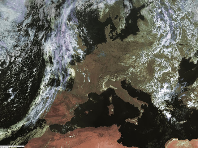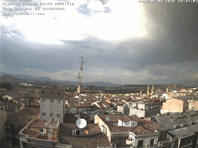 En los pronósticos semanales, ya advertíamos que entorno al miércoles-jueves llegaba un frente que iba a favorecer la formación de tormentas…y así se puede ver desde el satélite…