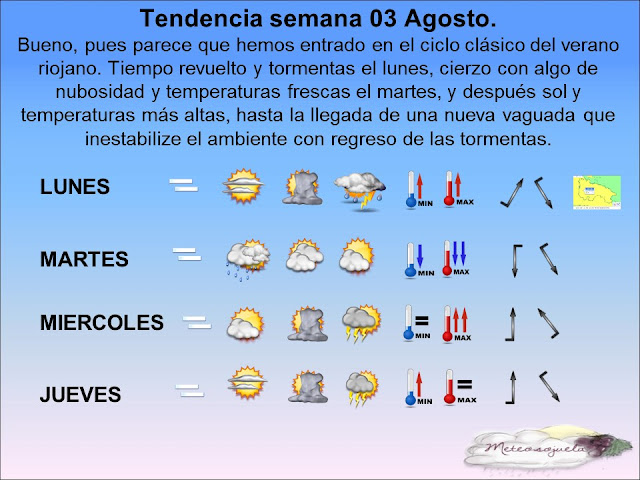 Pues parece que se empieza a establecer el ciclo típico del verano riojano …. Sol+calor … Tormentas … Cierzo+nubes+fresco y de nuevo el sol.