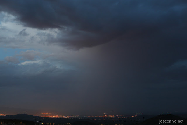 …y también con nubes de desarrollo vértical (cumulonimbos) que dejaban algunas tormentas como esta nocturna del pasado martes..