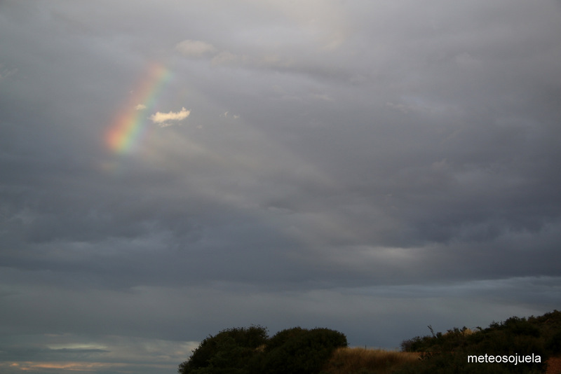 Y unos rayos anticrepusculares (en el lado contrario al sol) en este caso asociado aun “peacito” de arcoiris..
