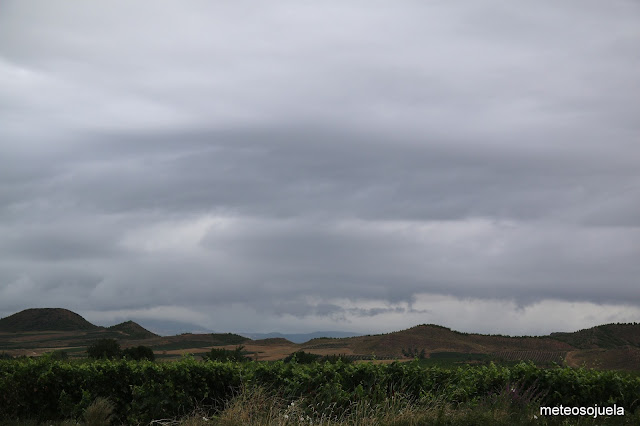Y estas cortinas de precipitación sobre el valle del Ebro que nos envía Laura Aguado desde Clavijo..