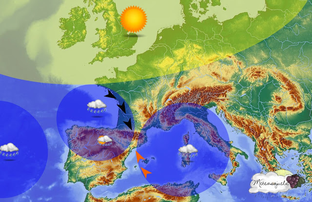 Tenemos las altas presiones que se extienden desde las islas Británicas a Centroeuropa, y bajas presiones en el Mediterráneo con una borrasca, asociada a un embolsamiento de aire frío en capas altas, que se va a situar en el Cantábrico durante el viernes, dejando tiempo algo revuelto en nuestra región.