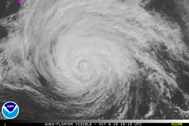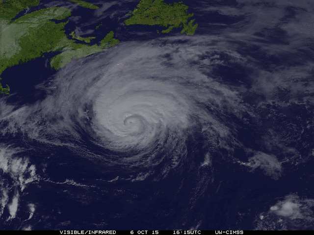 Si cogemos la animación de la evolución del huracán Joaquín en los días pasados esta sería más o menos, la secuencia correcta del proceso.