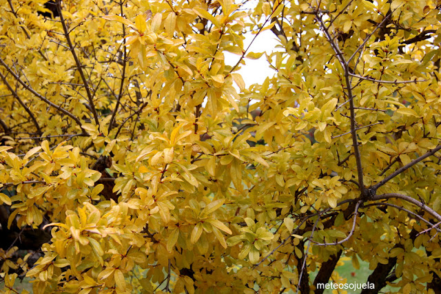 Estos pigmentos que permanecían “enmascarados” son los  carotenos que dan a las hojas esos tonos amarillentos y anaranjados……