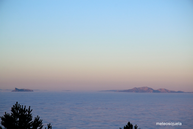 El aire frío condensa la humedad y se forman estas nubes estratiformes pegadas al suelo que denominamos niebla y que deja estas bonitas imágenes.