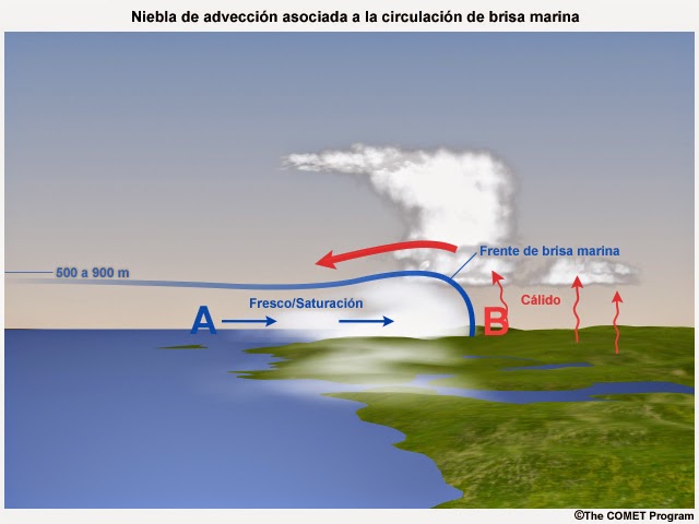 que se formen estas nieblas se tiene que dar un enfriamiento de la masa de aire y una condensación de la humedad existente en ese aire, por lo tanto necesitamos frío y humedad.