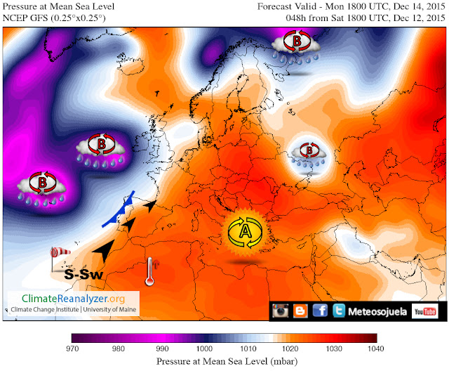 Sin embargo durante los primeros días de la semana llega un frente por el Atlántico, que se irá desgastando conforme se encuentre con las altas presiones algo más debilitadas.