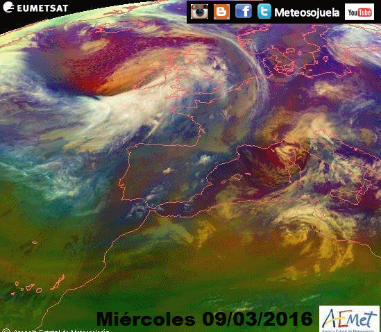 Así de bien se ve en la animación con imágenes del satélite Meteosat… (aire frío-colores morados)