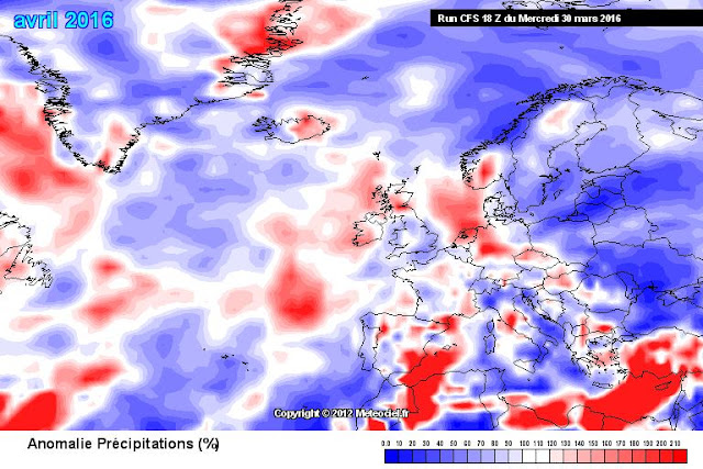 Lameteo.org que en sus pronósticos utiliza las previsiones estacionales de varios modelos americanos y europeos nos dice que Abril sería  más frío más húmedo de lo habitual
