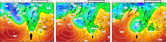 Así que ya véis, continuamos con tiempo algo revuelto por frentes debilitados que irán llegando a nuestra región, dejando alternancia de periodos nubosos con otros menos nubosos. Los vientos irán rolando del Nw al Sw por lo que se recuperarán las temperaturas.