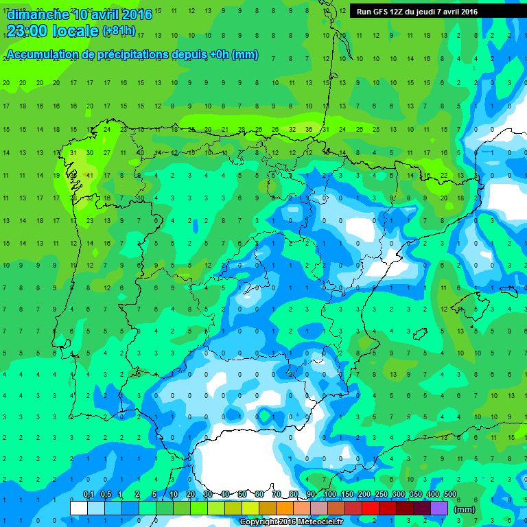 En los modelos de precipitación acumulada observamos como las mayores cantidades se producen en la zona Occidental, de todas maneras tampoco parecen que vayan a ser abundantes