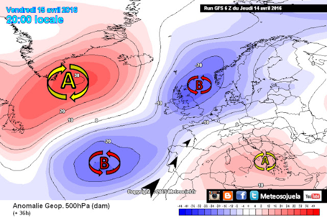 Observamos, para este fin de semana la presencia de más aire frío en nuestra zona de lo que suele ser habitual, con dos centros uno en el Atlántico y otro en las Islas Británicas que son los responsables de la formación de borrascas en superficie.