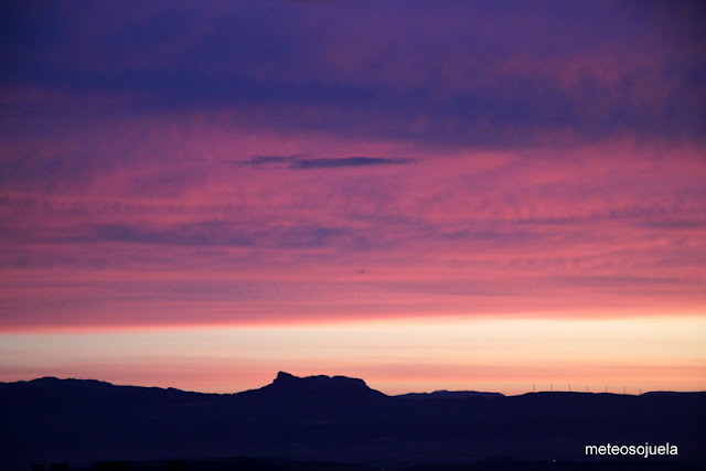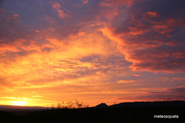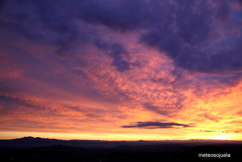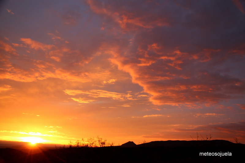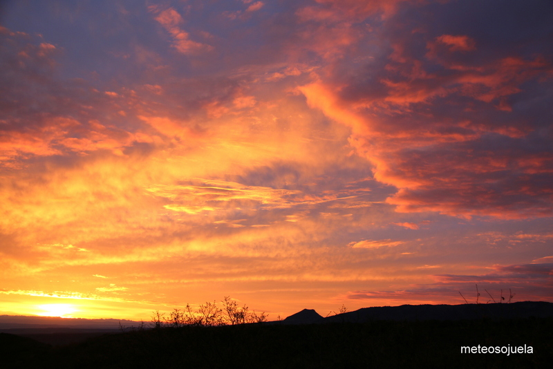 Empezabamos el viernes con un amanecer impresionante con nubes medias (altoestratos y altocúmulos) teñidos por el sol…