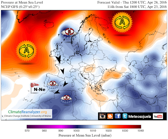 Parece que de cara al fin de semana el antciclón de las Azores se acercaría a la península dejando un tiempo más estable, aunque con flujo de norte