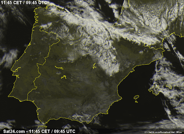 En el satélite…imágenes típicas de una situación de Norte con nubosidad acumulada en el Cántabrico,valle del Ebro y Pirineo