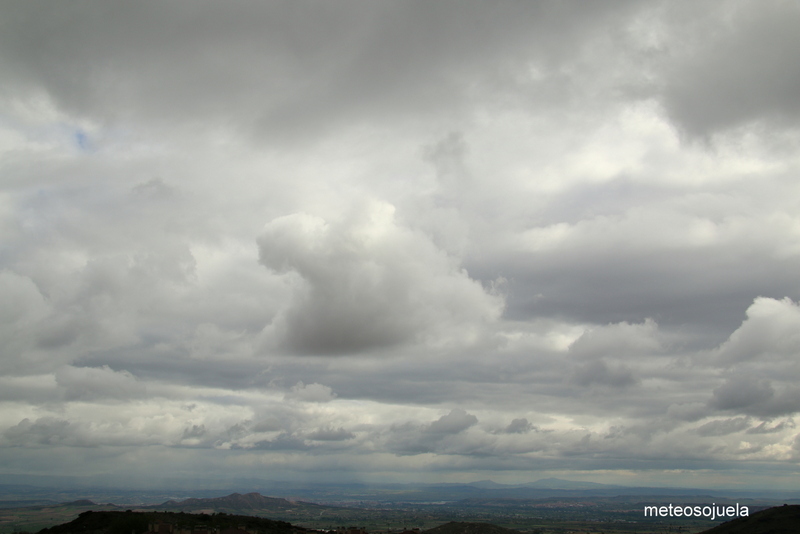 ..y en nuestros cielos riojanos nubes medias-bajas (estratocúmulos) con algunos chubascos débiles sobre todo en áreas de montaña….