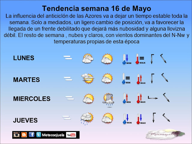 Seguimos bajo la influencia del anticilón de las Azores con flujo dominante del Nw.