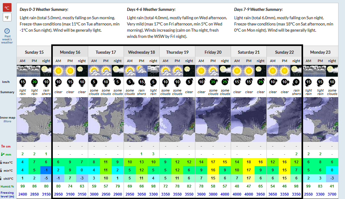 Os dejo aquí las previsiones en montaña teniendo como base la cota más baja (1500m) de la estación de Valdezcaray…