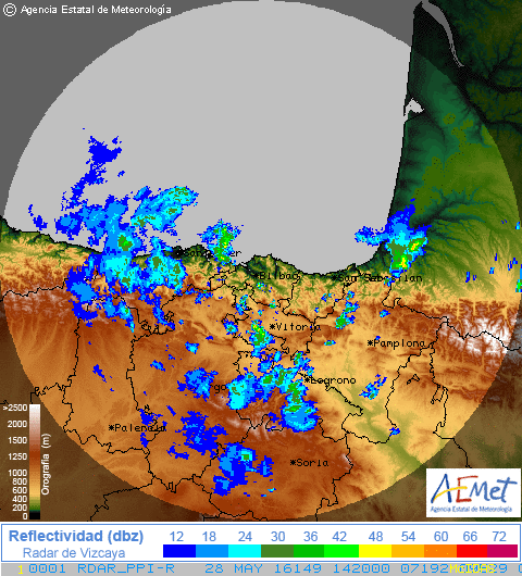 Se pueden producir precipitaciones débiles ,más probables en áreas de montaña. Tendencia a ir remitiendo. Todavía se puede producir algún chubasco tormentoso débil.
