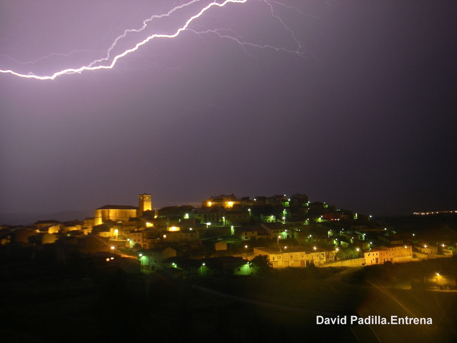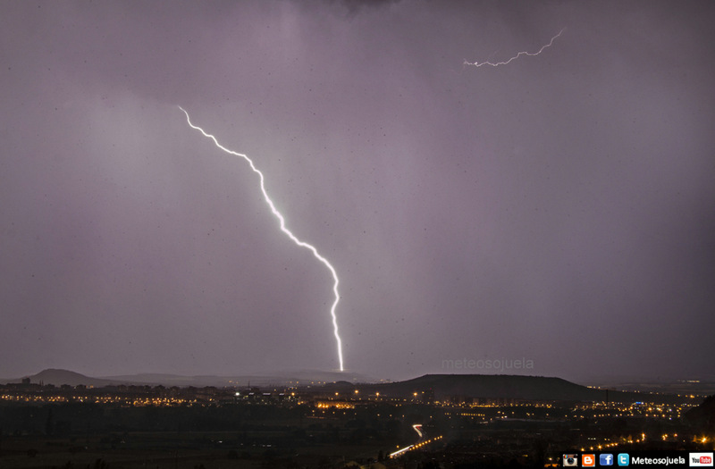 …así se podían ver en estas espectaculares imágenes de Logroño con los rayos al fondo.