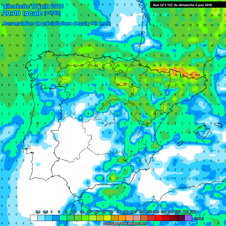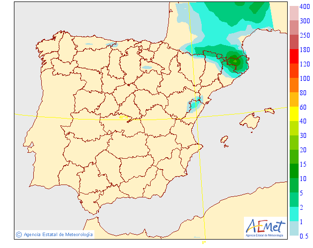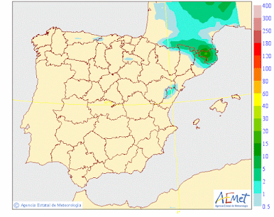 En los mapas de precipitación acumulada observamos que se puede producir algunas precipitaciónes asociadas a la formación de tormentas, más probable en la Ibérica con acumulados que pueden rondar los 25-30 litros. En el valle también lloverá pudiéndose recoger alrededor de los 5-10 litros.