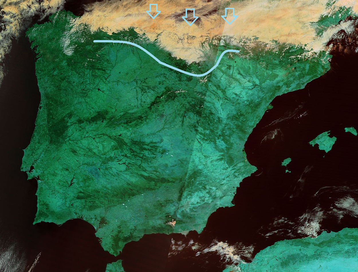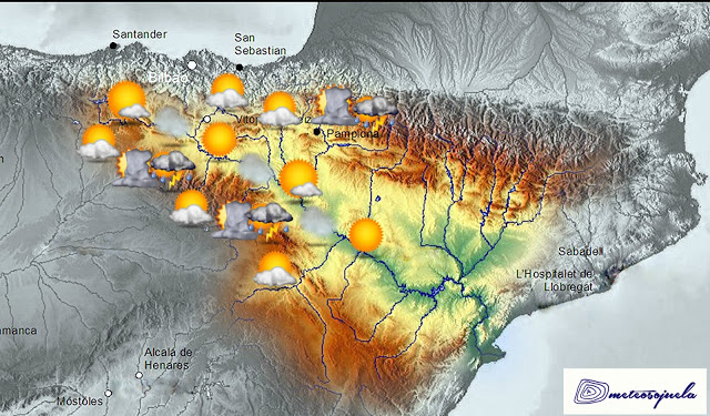 Se esperan precipitaciones de carácter tormentoso en áreas de la Ibérica, con posibilidad de extenderse al valle. Localmente pueden ser intensas y venir acompañadas de granizoProbabilidad media según AEMET