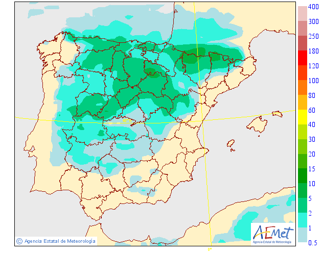 Se pueden producir  precipitaciones  en forma de tormenta por la tarde, más probables en la Ibérica. Localmente pueden ser intensas e ir acompañadas de granizo.