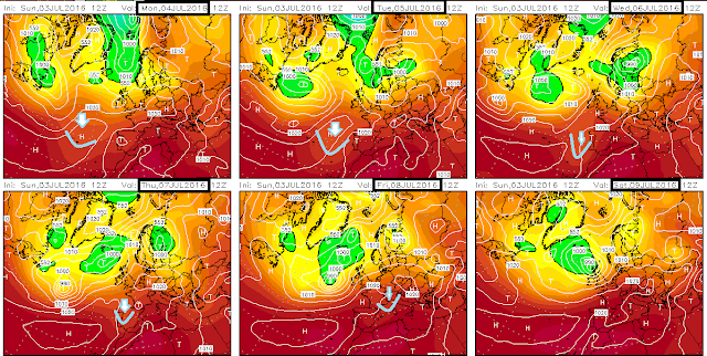 Según indican a día de hoy los modelos, parece que conforme se acerque el fin de semana se impone el anticiclón dejando un tiempo más estable de manera que las tormentas irán desapareciendo con temperaturas que se van a mantener altas.