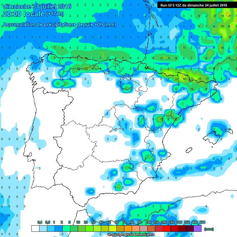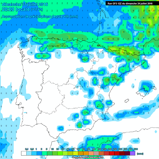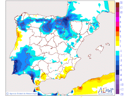 En los mapas de precipitación acumulada observamos que las pocas que se produzcan se van a localizar en la Ibérica