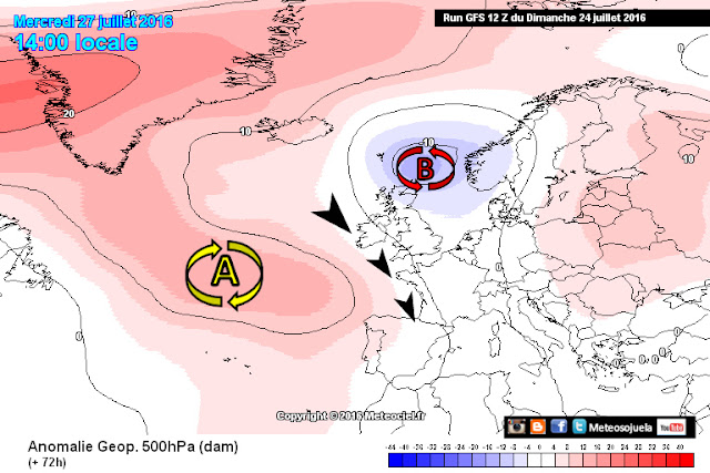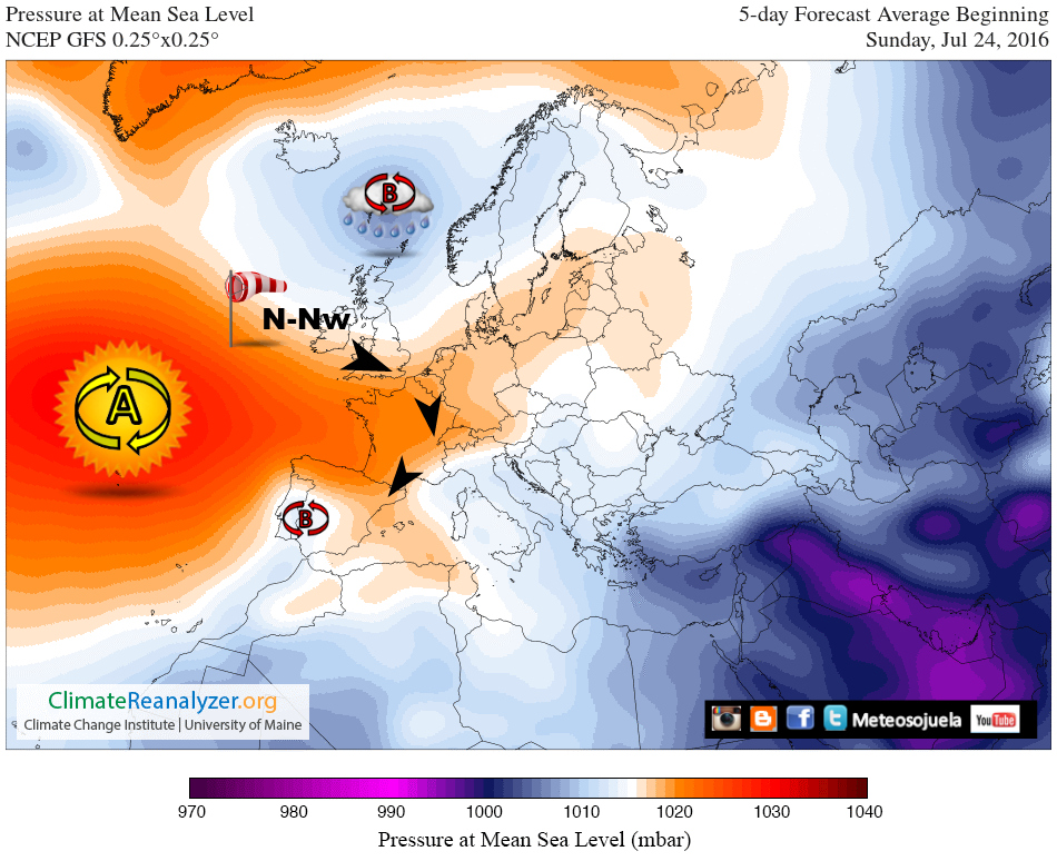 Según indican a día de hoy los modelos, parece que aunque no se modificaría prácticamente la configuración atmosférica, la baja relativa fruto del calor acumulado puede dejar más inestabilidad en el ambiente con aparición de alguna tormenta y ascenso de temperaturas.