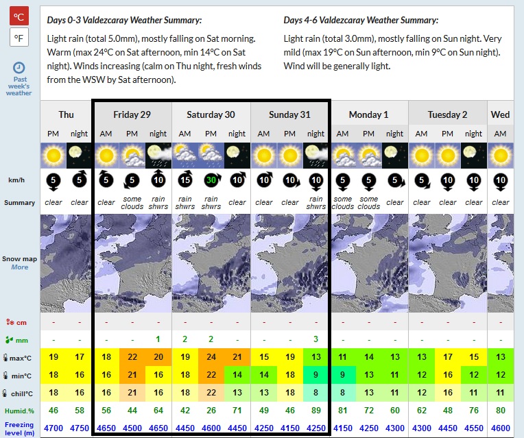 Aquí tenéis las previsiones en montaña teniendo como base la estación de Valdezcaray a 1500m. Un poquito de todo… :))